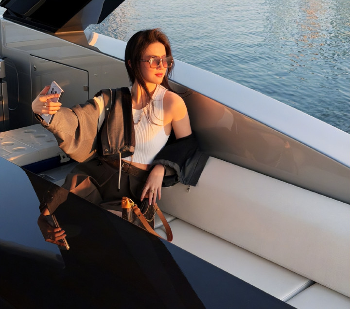 复古摩登的墨镜是美人脸上最好的点缀,很有名媛千金的气质。哪怕是在死角视角的自拍镜头下,刘亦菲依旧璀璨耀眼,让人惊艳。