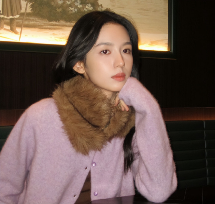 穿上咖色外套顶着一头波浪卷发的周也简直就是从画报走出来的复古美人,眼神楚楚动人,完全就是精雕细琢的美人。