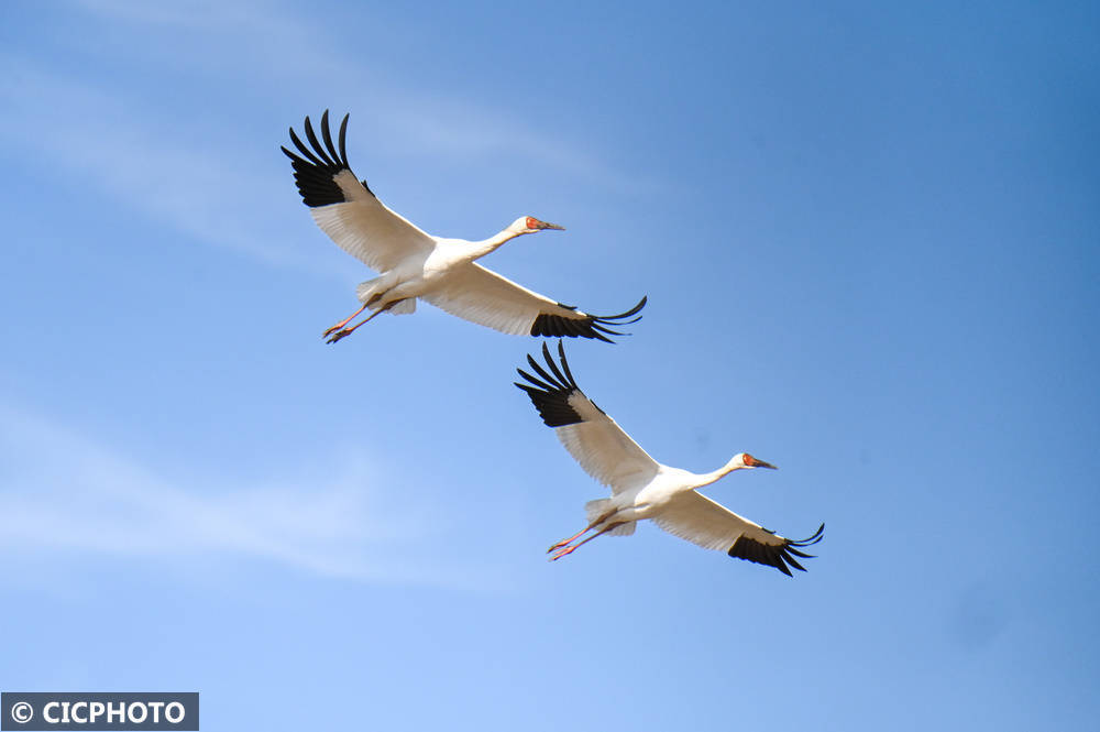↑2025年11月19日在江西南昌高新区五星白鹤保护小区拍摄的白鹤。CICPHOTO/鲍赣生 摄编辑:马兰