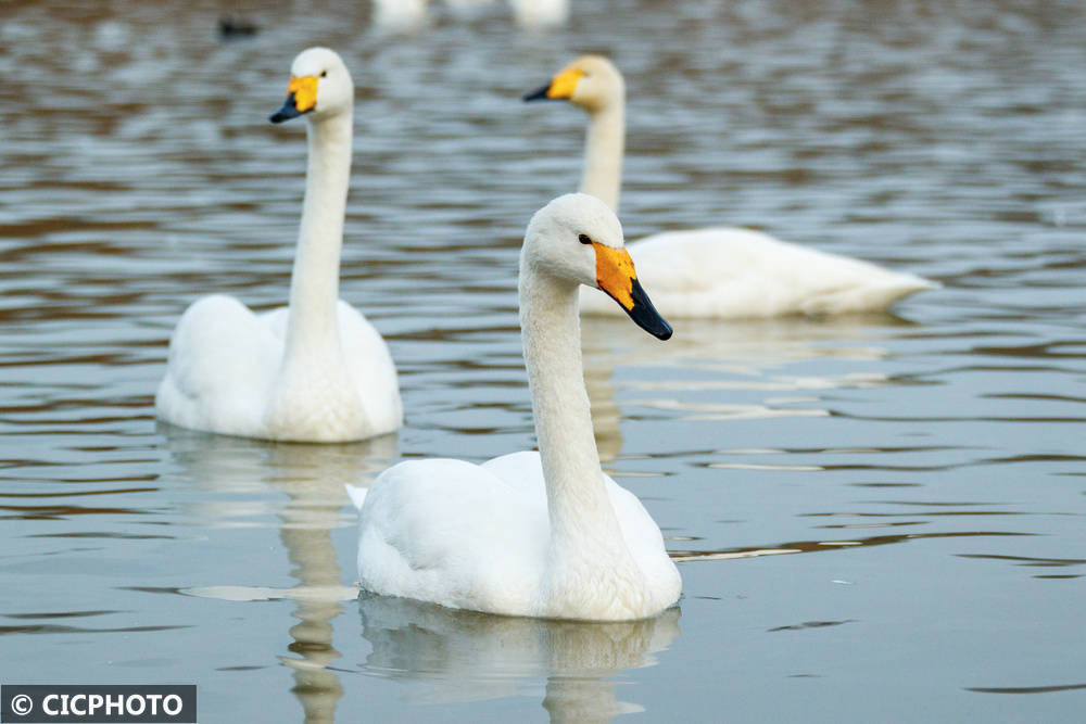 ↑2025年12月20日在河南省三门峡市黄河湿地拍摄的天鹅。CICPHOTO/徐泽源 摄