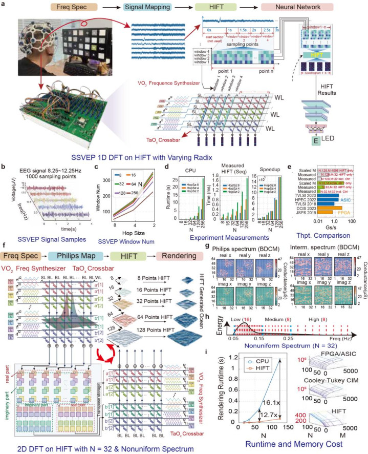 在此背景下,研究团队在国际上首次实现了基于两种后摩尔器件异质集成架构的第一性原理傅里叶变换系统(Hetero-IntegratedFourierTransform,HIFT),提出了一种全新的、融合易失性与非易失性忆阻器的高通量频谱计算架构。