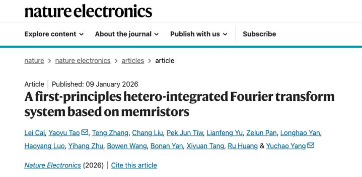 相关成果以题为Afirst-principleshetero-integratedFouriertransformsystembasedonmemristors的论文,发表于国际顶级期刊《自然∙电子学》(NatureElectronics)。